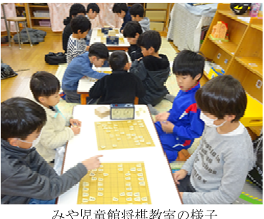 児童館将棋教室(みや児童館)は毎月第1、3土曜日に行っており19名が在籍しています。公民館将棋教室は三谷公民館で毎月第2日曜に行っており20名が在籍しております、小江公民館将棋教室は第2、4金曜日に行っており、20名が在籍しております。また、蒲郡将棋名人戦は5月、8月、11月の年3回開催をしています。